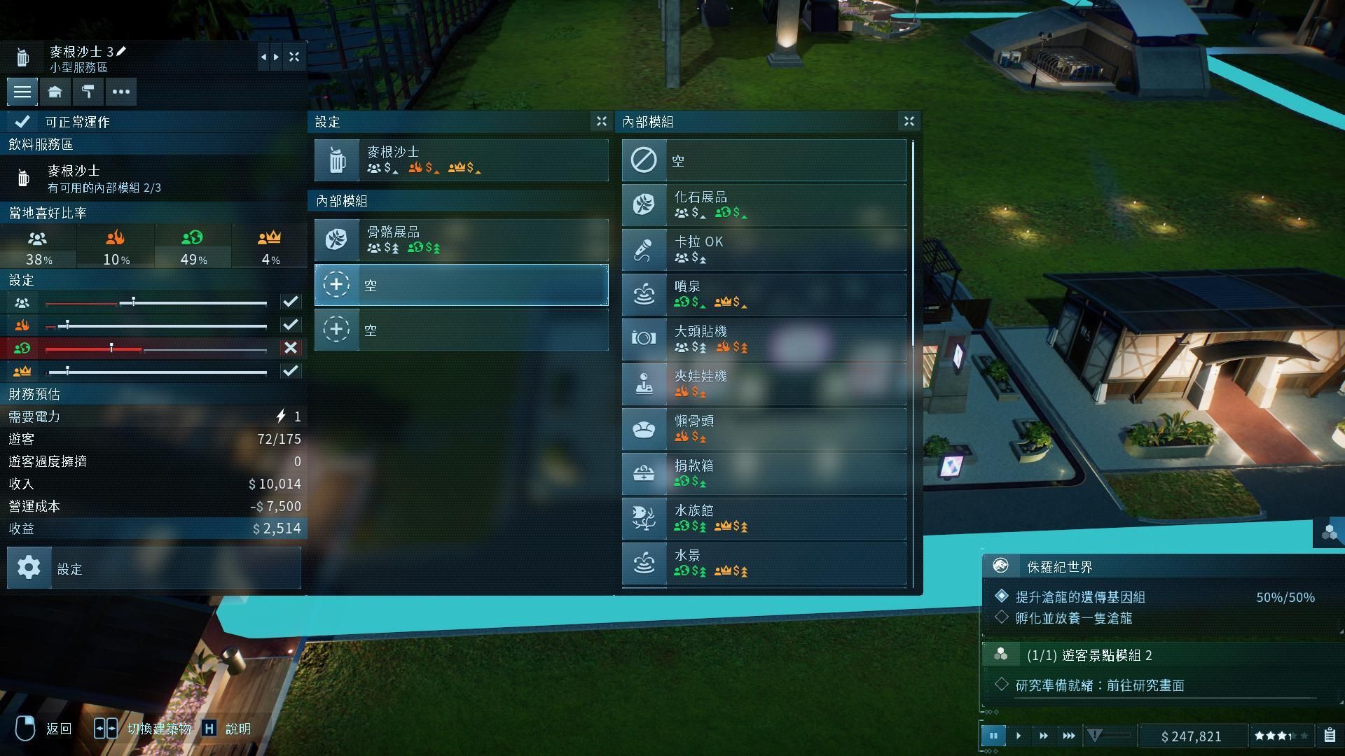 生產研發高吸引度的恐龍來提升公園評價也是經營的一大考驗