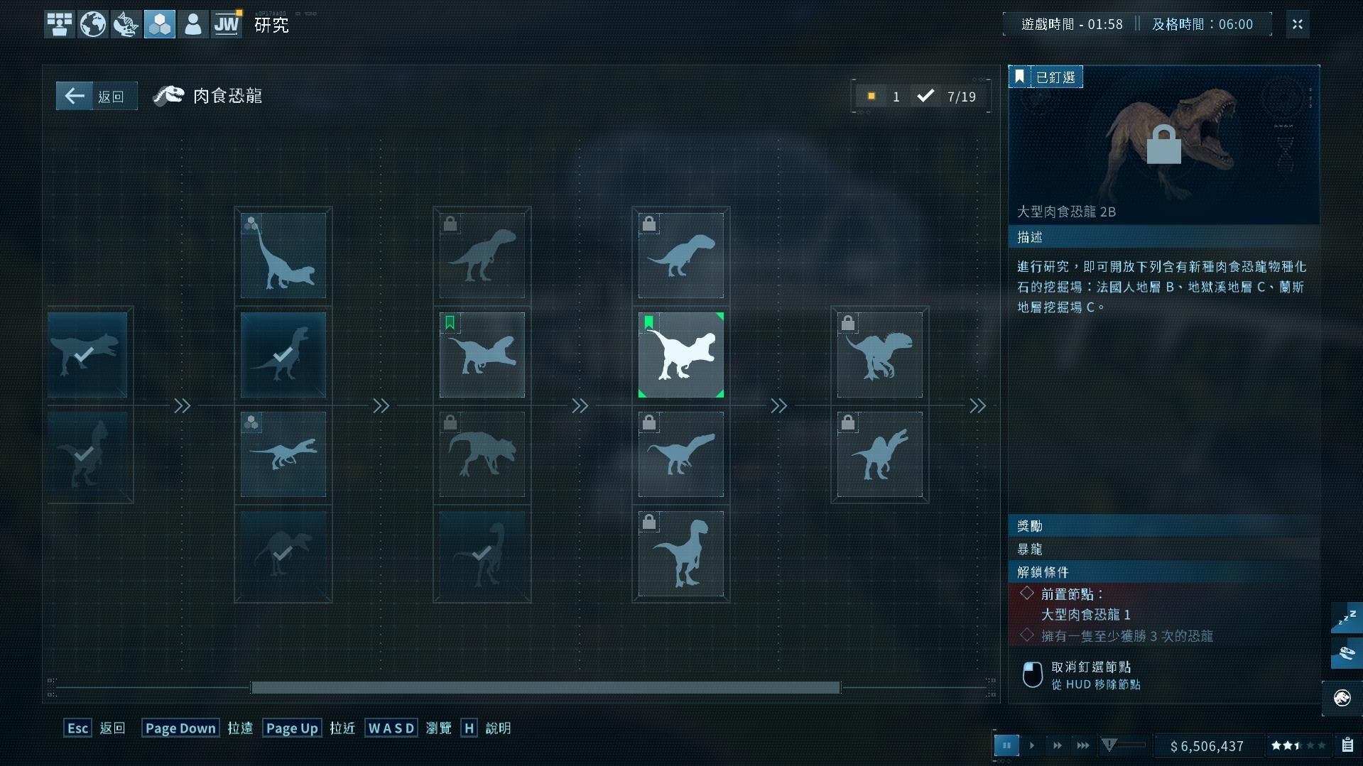 以前恐龍是先挖化石分析 然後孵化 這次變成科技樹 你不一階一階來可不行