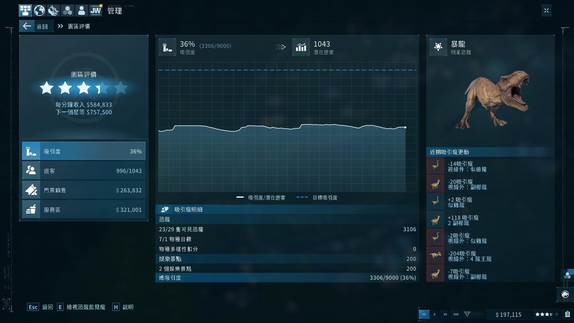 如果只孵化草食恐龍或吸引度不夠的恐龍 可能造成來園客人不夠 經費不夠負擔
