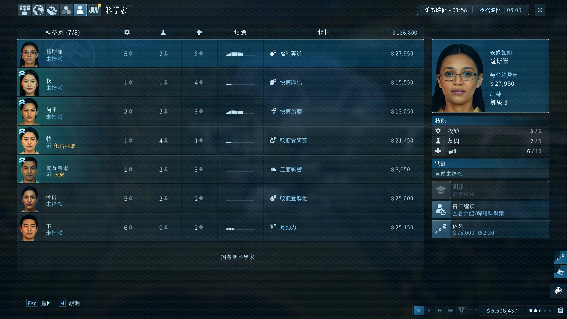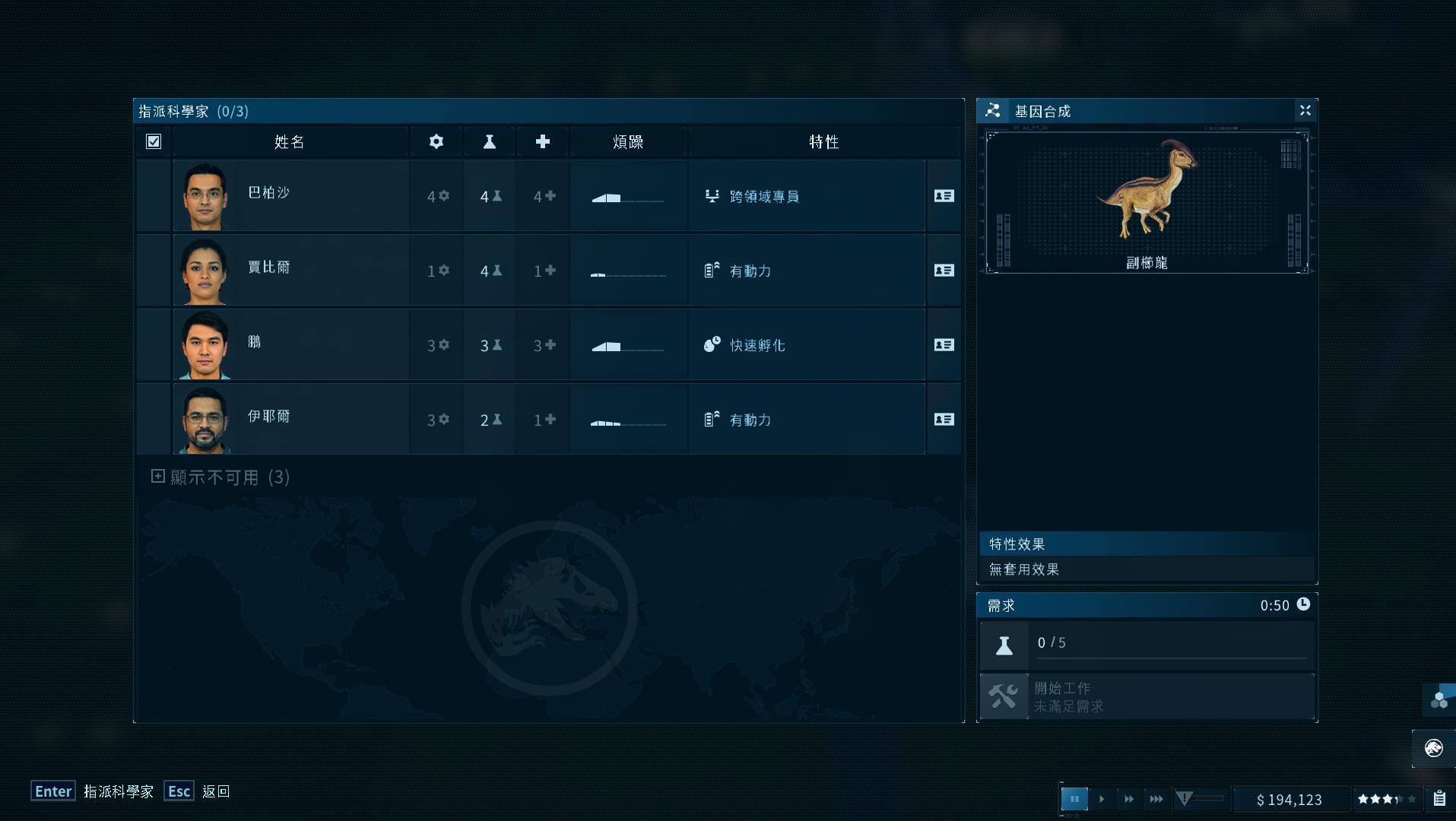 加入了科學家管理 必須聘請各式各樣專業的科學家來幫助你 探勘分析恐龍化石