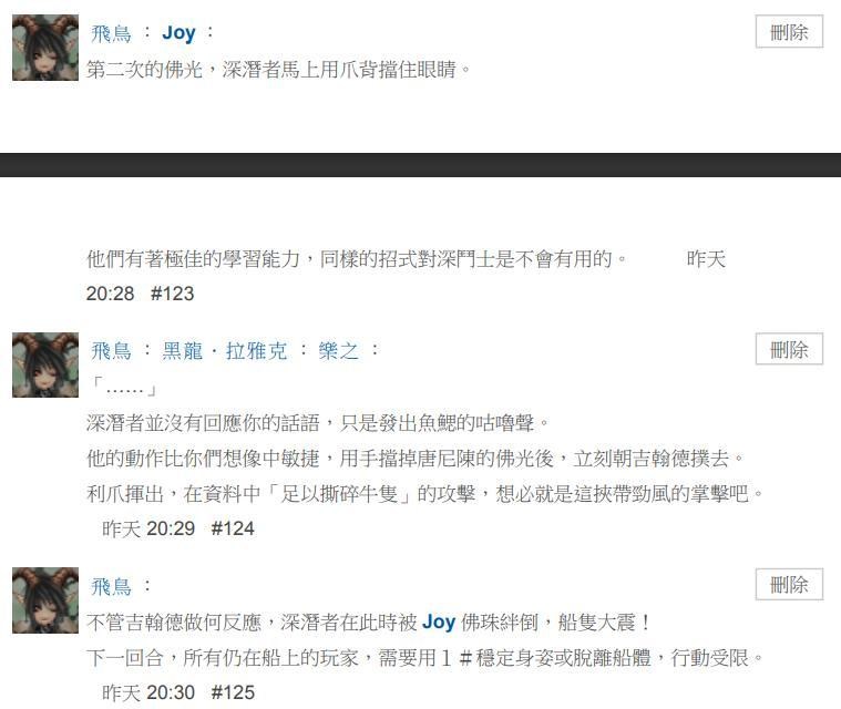 剩下的就是尊重引導,盡可能讓引導順利執行劇本,盡量別花時間跟引導爭論為啥我的能力用不了,我本身除了引導的描述有前後矛盾或著漏判的地方,其他時候都是不會去額外tag引導的。