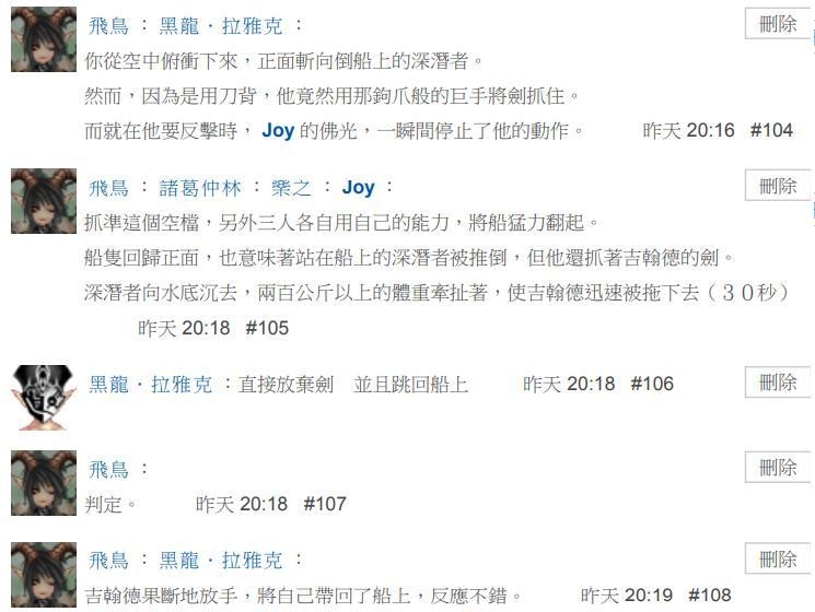 其實黑龍#98這邊的描述也蠻好笑的,【信任魚人的肉體強度不會被劈死】,所以說他也知道魚人肉體強度很高還是選擇跑上去硬砍。