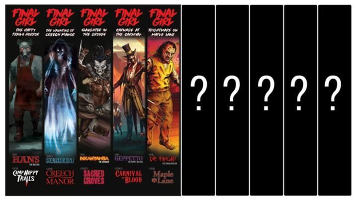 最後女孩除了基礎遊戲盒還有5個劇情盒,KS集資還另外有一個小盒的殺人魔盒擴充,遊戲採用的是劇情盒模組,每一個劇情盒有一個專屬的殺人魔和場景,你擁有越多個劇情盒就可以體驗多種殺人魔跟場景搭配的不同組合。有點類似死亡湮滅的邪神盒跟劇本盒可以隨意搭配這樣。
