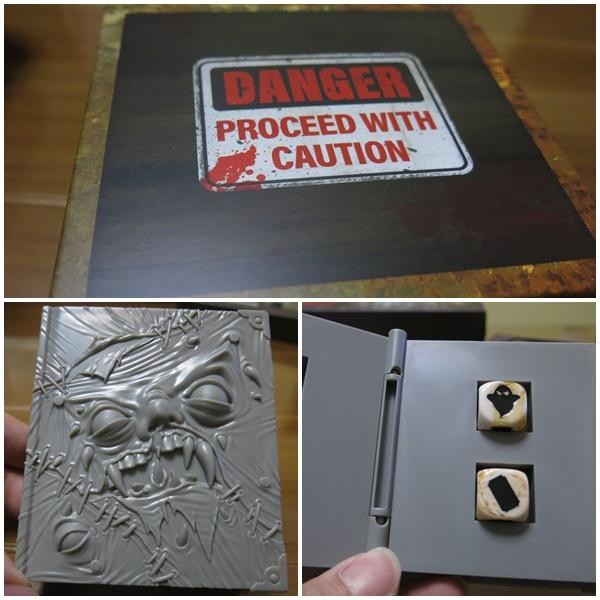KS眾籌還有一個神祕盒子,是一本死靈之書阿!!!裡面居然是兩個看起來很邪惡的骰子