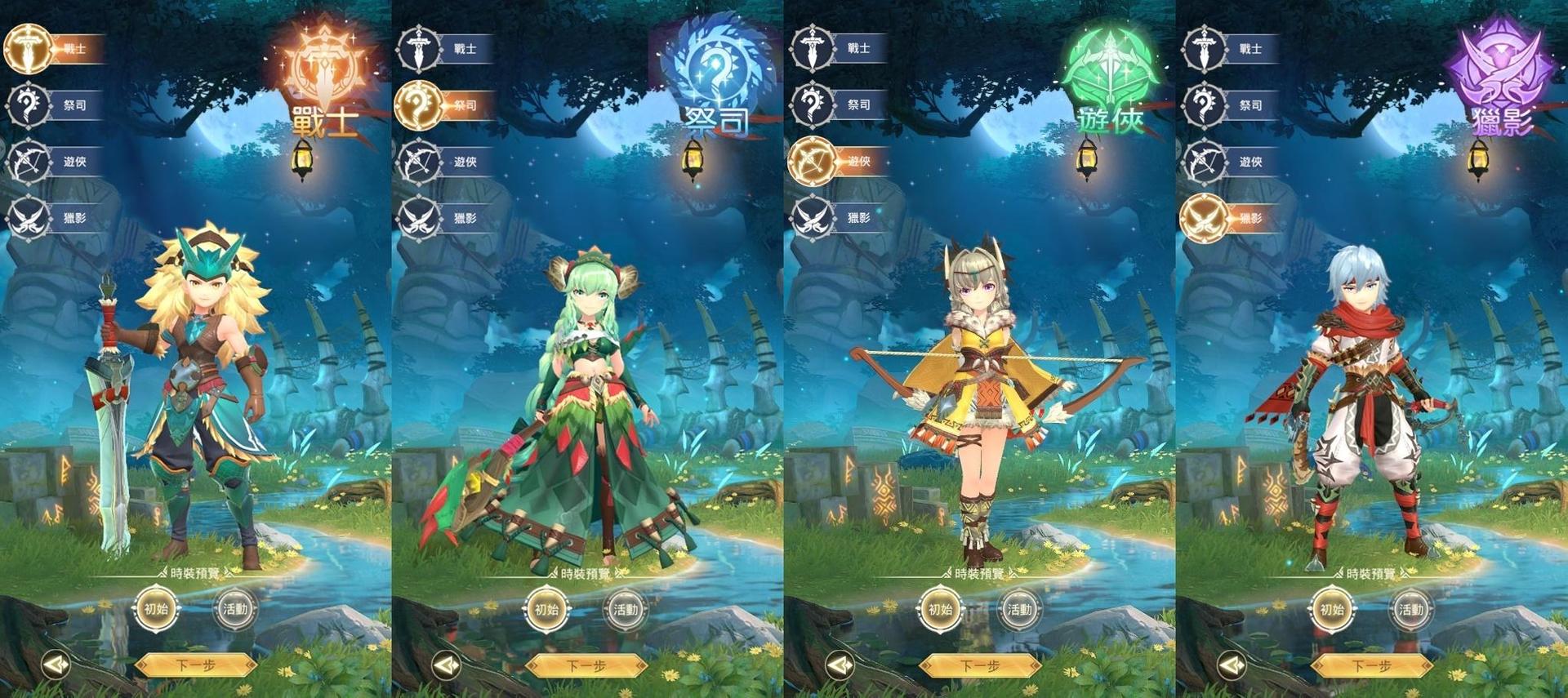 遊戲目前開放的基礎職業有四個,戰士、祭司、遊俠、獵影,戰士是近距離、防禦血量偏高的職業,祭司是遠距離、大範圍攻擊的職業,遊俠是遠距離、高機動的職業,獵影可以隱身進行偷襲的PVP職業,我自己是選擇了難度較低的遊俠。