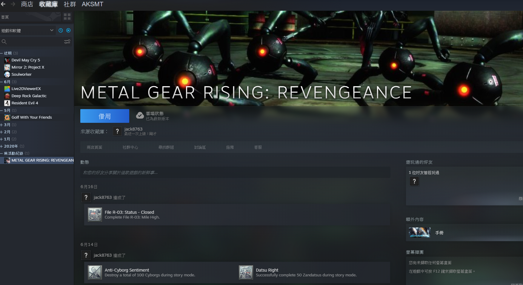 連上之後先去steam的MGR商店頁面確定是否成功