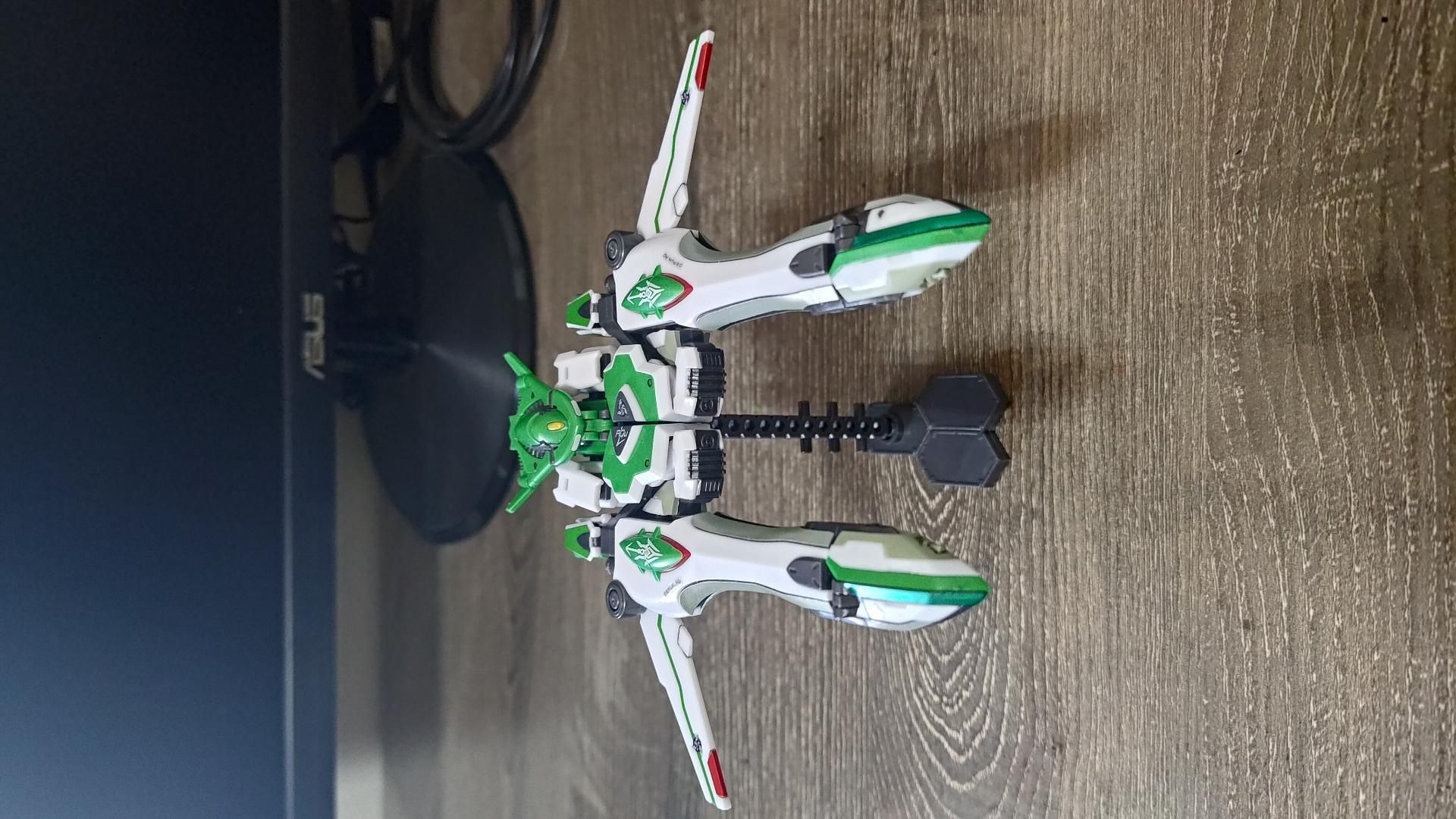 結果貼紙就被我弄壞了,所以用鋼彈麥克筆的金屬綠補上去