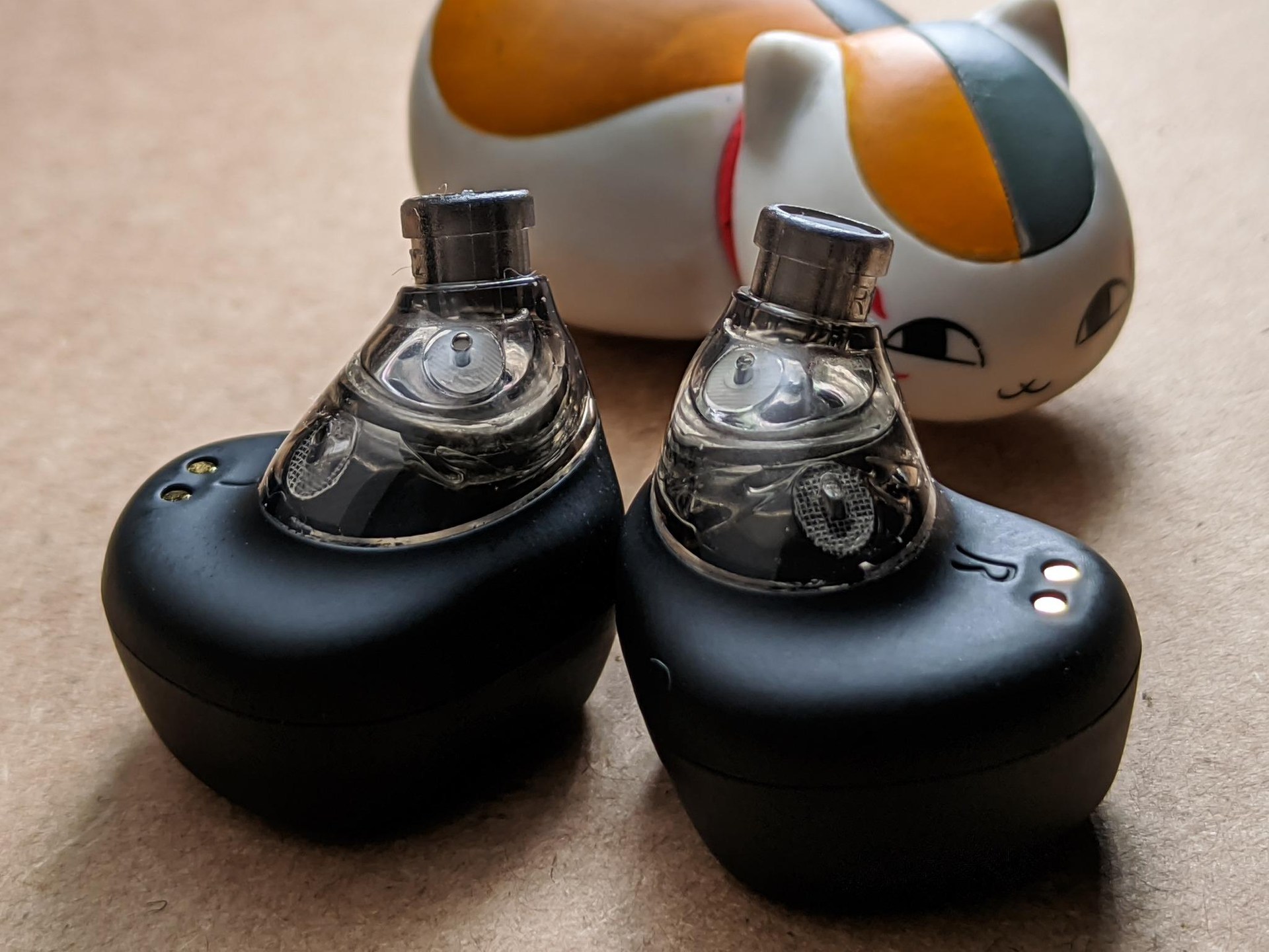 這耳機外觀很有科技感,雖然蠻大顆的但感覺不會很重,耳機中間包了一層親膚材質,更裡面是透明材質能看到內部結構,原來附的耳塞不喜歡就換掉了,順便買了藍芽接收器,打算偶爾當電腦耳機用。