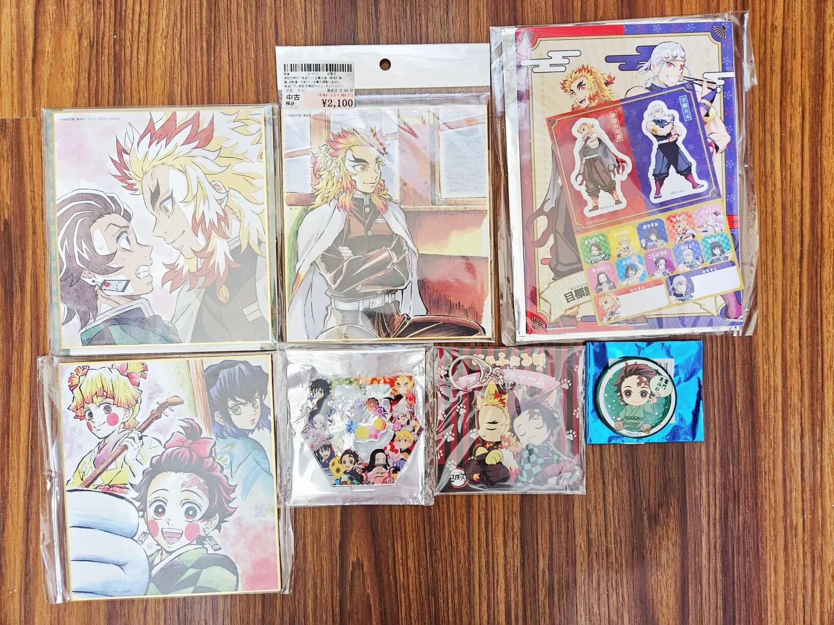 ↓鬼滅之刃的色紙、壓克力吊飾及徽章等合照↓