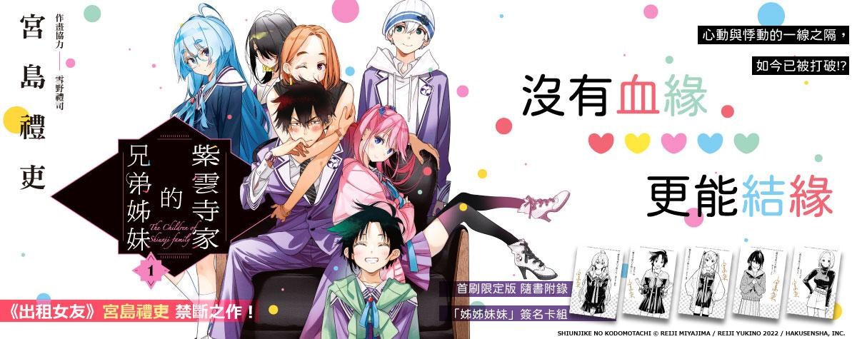 宮島禮吏《紫雲寺家的兄弟姊妹》漫畫單行本第1集首刷限定版在台上市同標籤作品搜尋:「宮島禮吏」|「雪野禮司」|「白泉社」|《Young Animal》|《紫雲寺家的兄弟姊妹》|「東立」|首刷限定版|bob情報文|漫畫新書2023|bob新書情報文