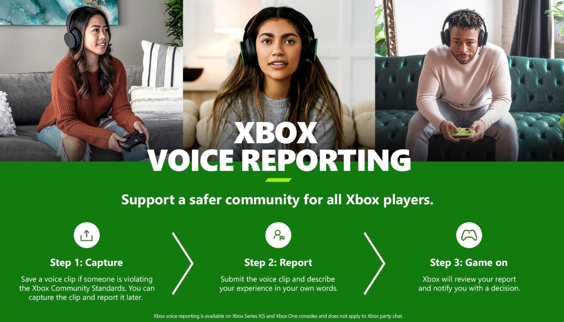 為了更良好的玩家競爭環境 ,最近Xbox在特定英語市場中推出Alpha 及Alpha Skip Head Insider先行嘗試的語音聊天回報功能。假若你在遊戲中隊伍的語音聊天,遭到不文明的語言欺凌,你將可以捕捉前60秒的遊戲畫面及語音聊天,然後回報給Xbox作調查。