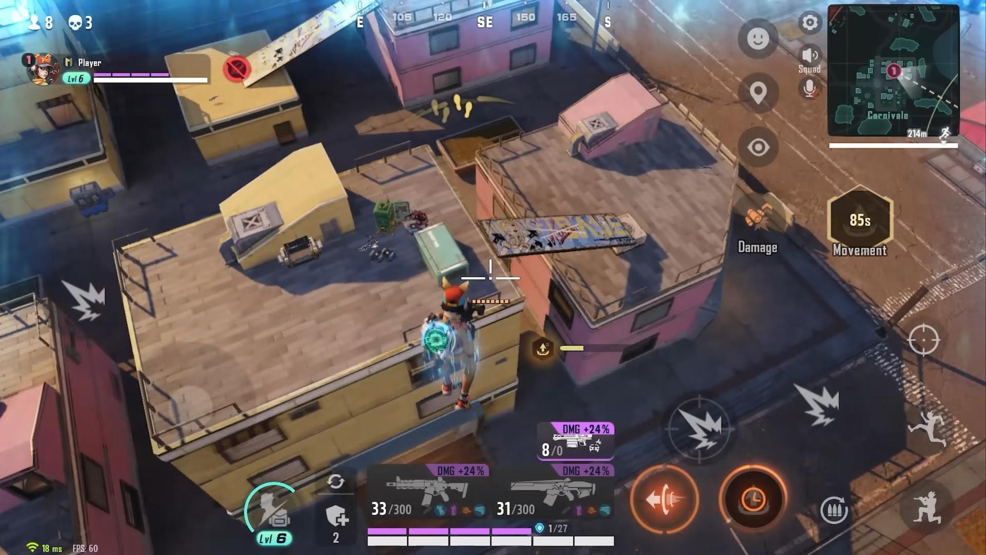 結論就是技能版PUBG,比較特別是有噴射背包,每個角色都有一定位移。技能上有部份都蠻特別,如有一位歌手大技是登台,可以強制把範圍內敵我困獸鬥。