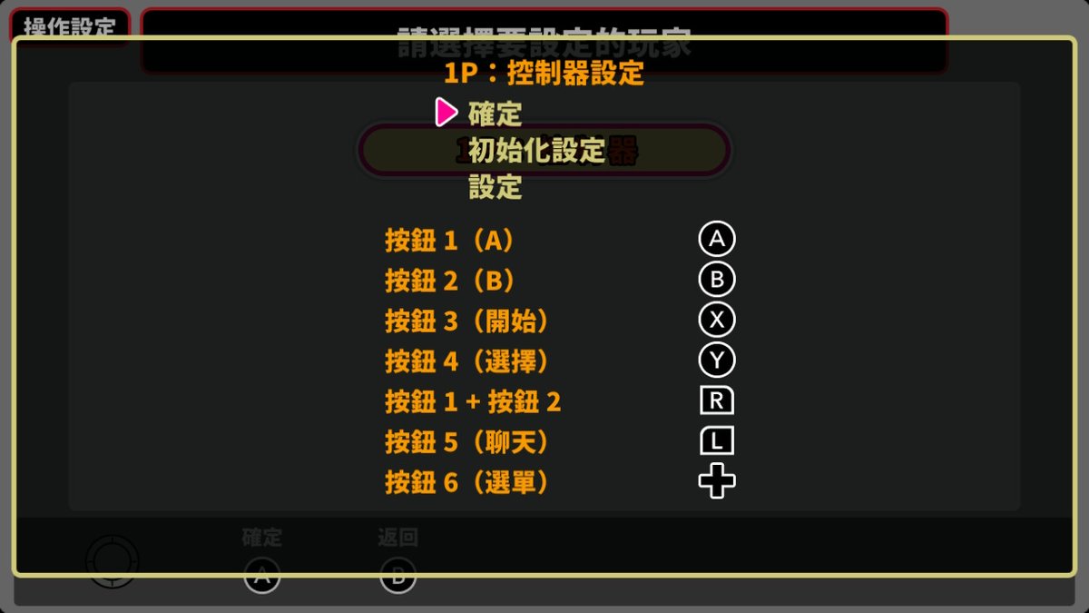 「1P控制器」的順序輸入「上、右、下、左、按鈕 1、按鈕 2」 |