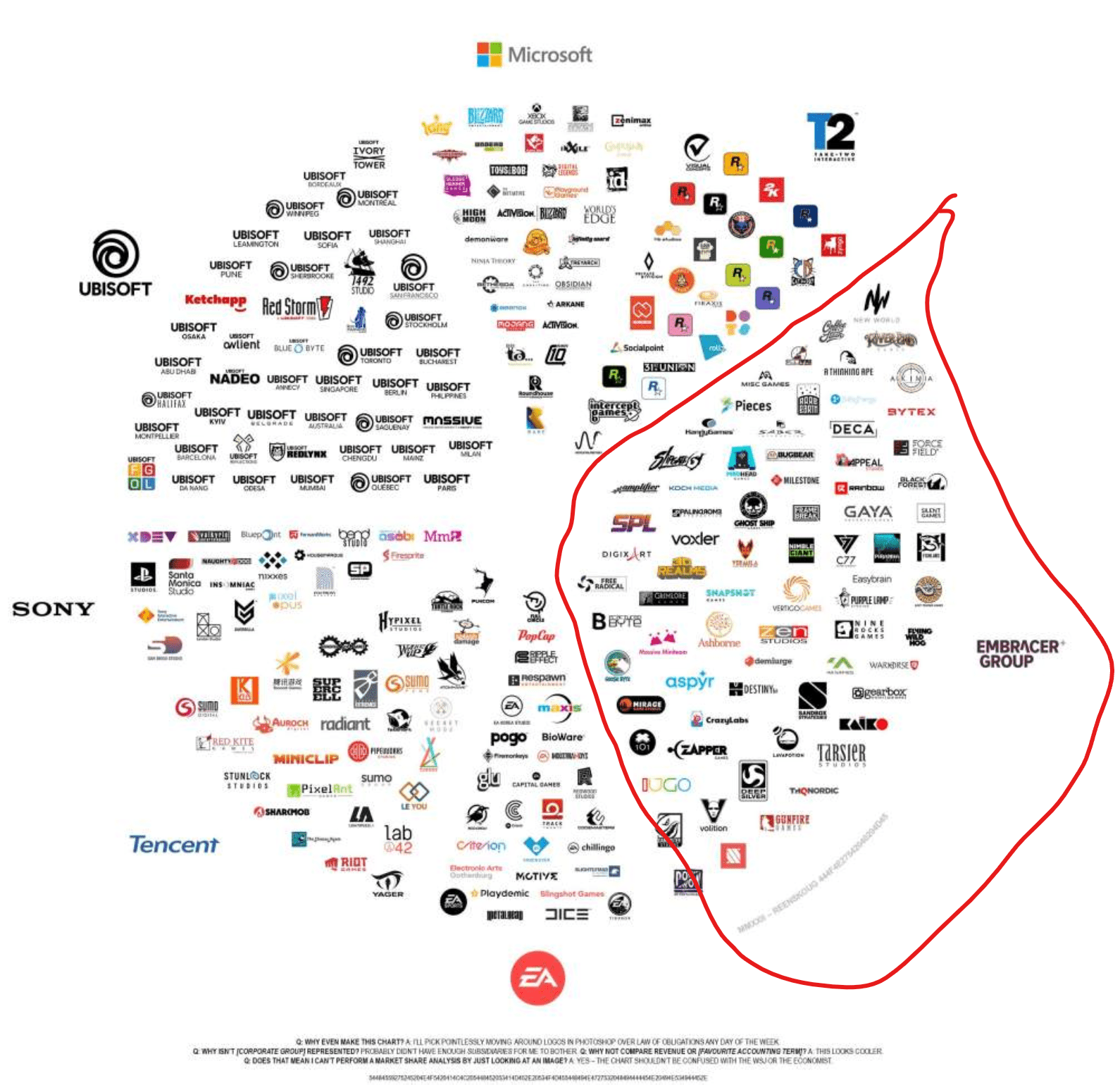 另外收購界的巨頭Embracer Group,手執邊緣禁地的Gearbox , 以及盜墓者蘿拉的Crystal Dynamic 等知名工作室,今年最多的卻不是收購的消息。