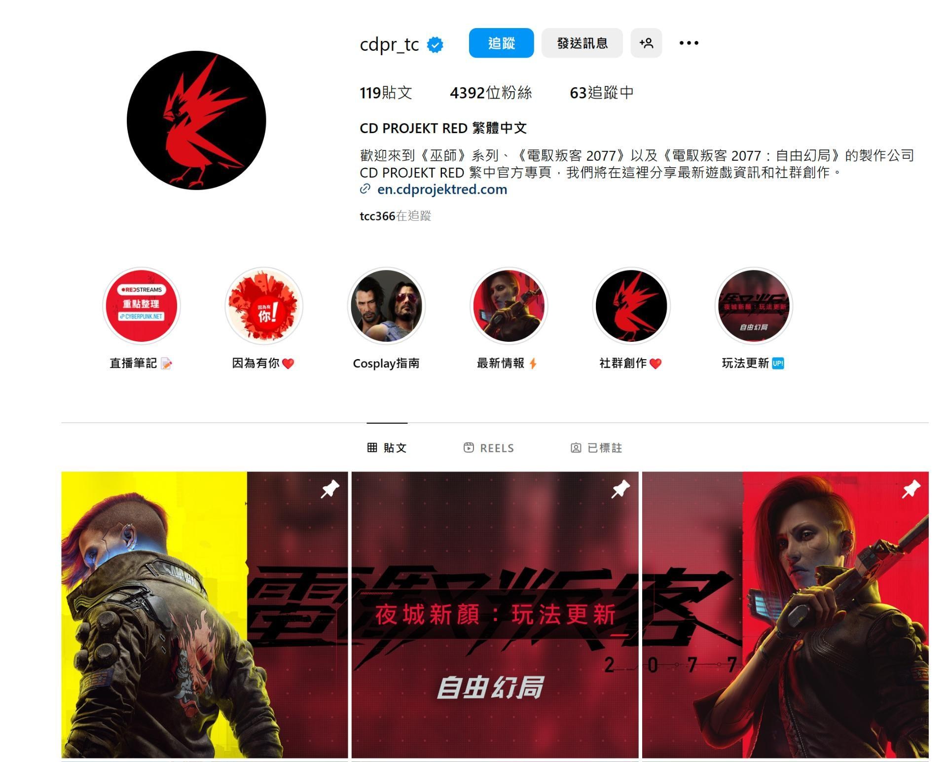 整體今年最深印像的大廠,我會是CDPR吧。首先它設立了繁體中文版的IG帳號,而且更新得密,大家多多支持及追蹤這麼重視繁中社群的廠商吧。