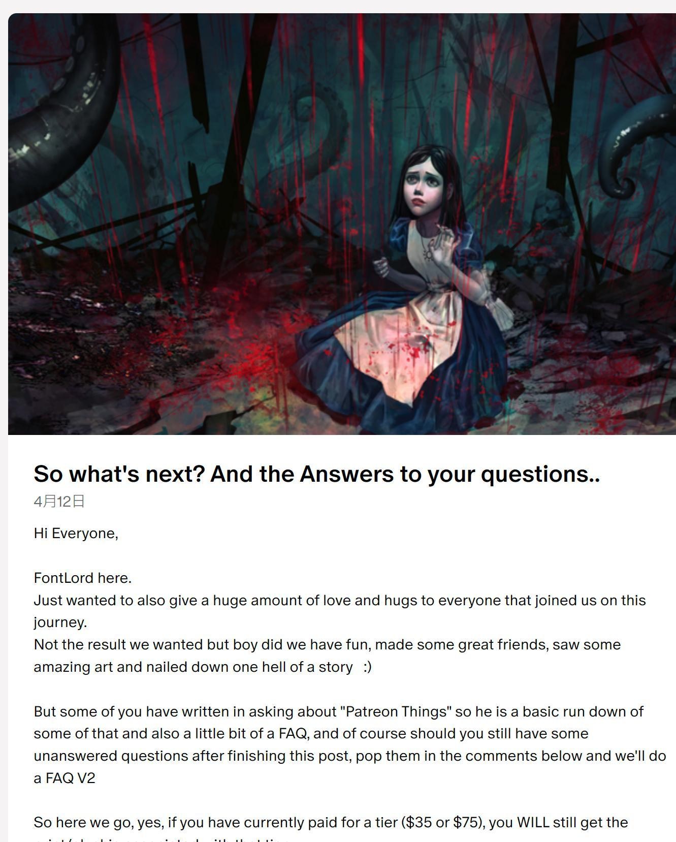 但正式拒絕愛麗絲驚魂記的眾籌項目,以及取消Apex單人版遊戲,則令我相當傷心,特別是我一直都有課金前者呢。
