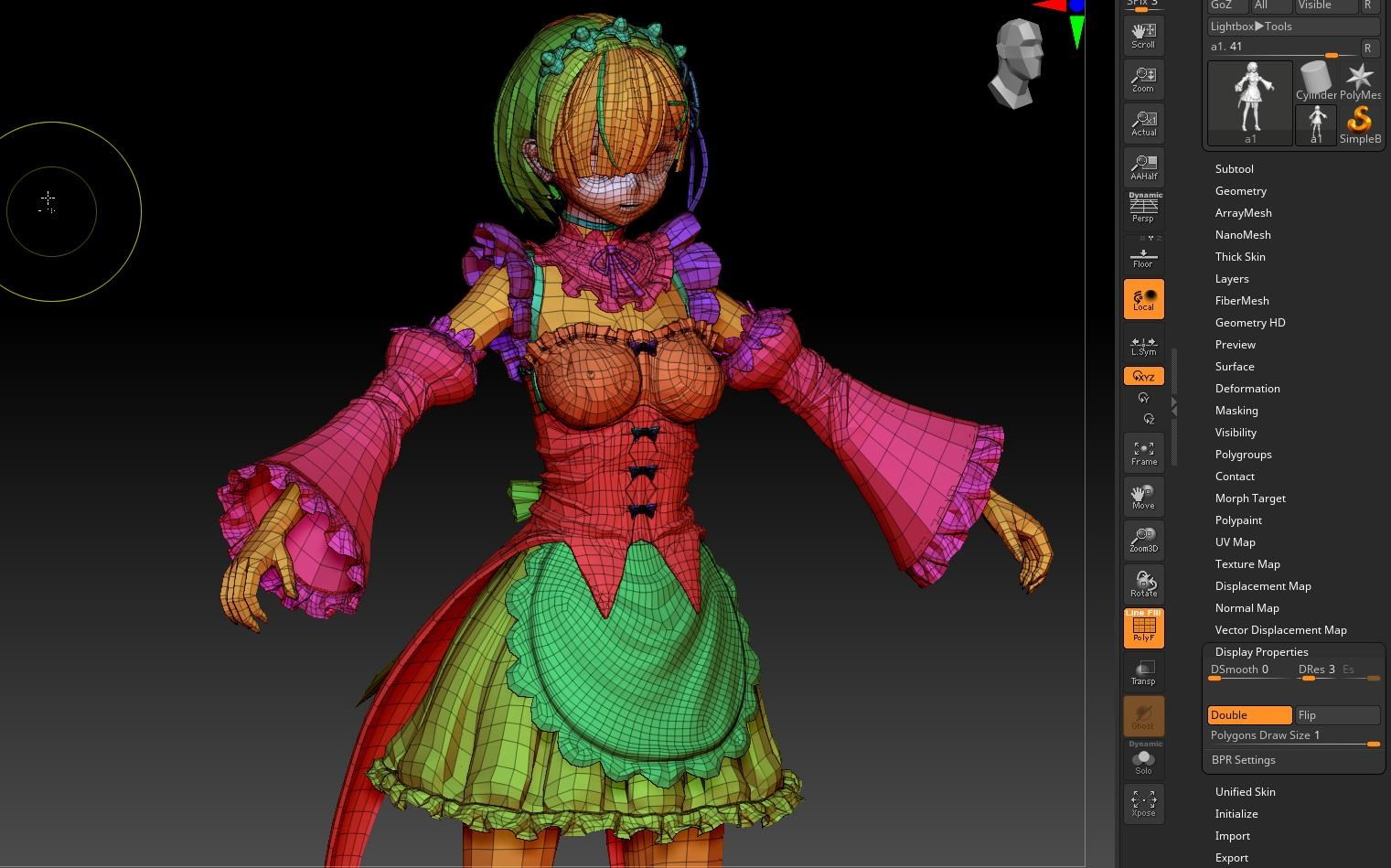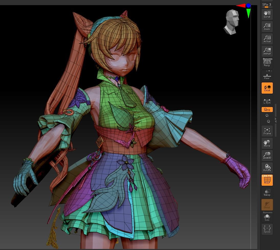只需要製作服裝和頭髮, 因為涉及到遊戲裡的大量換裝和換角, 所以會統一使用單一頭部和身體模組