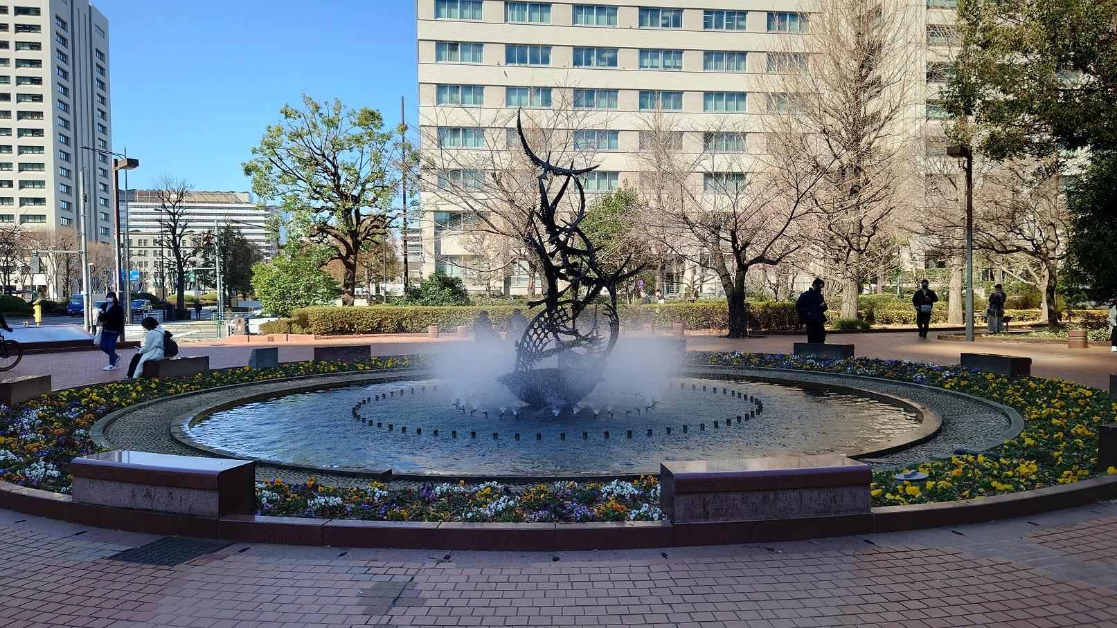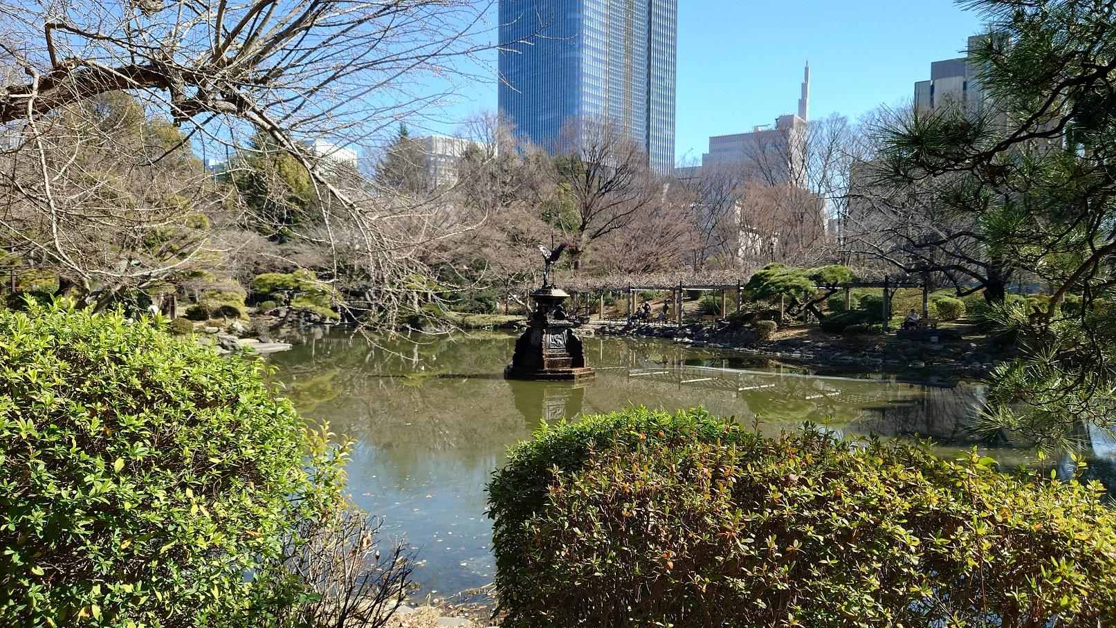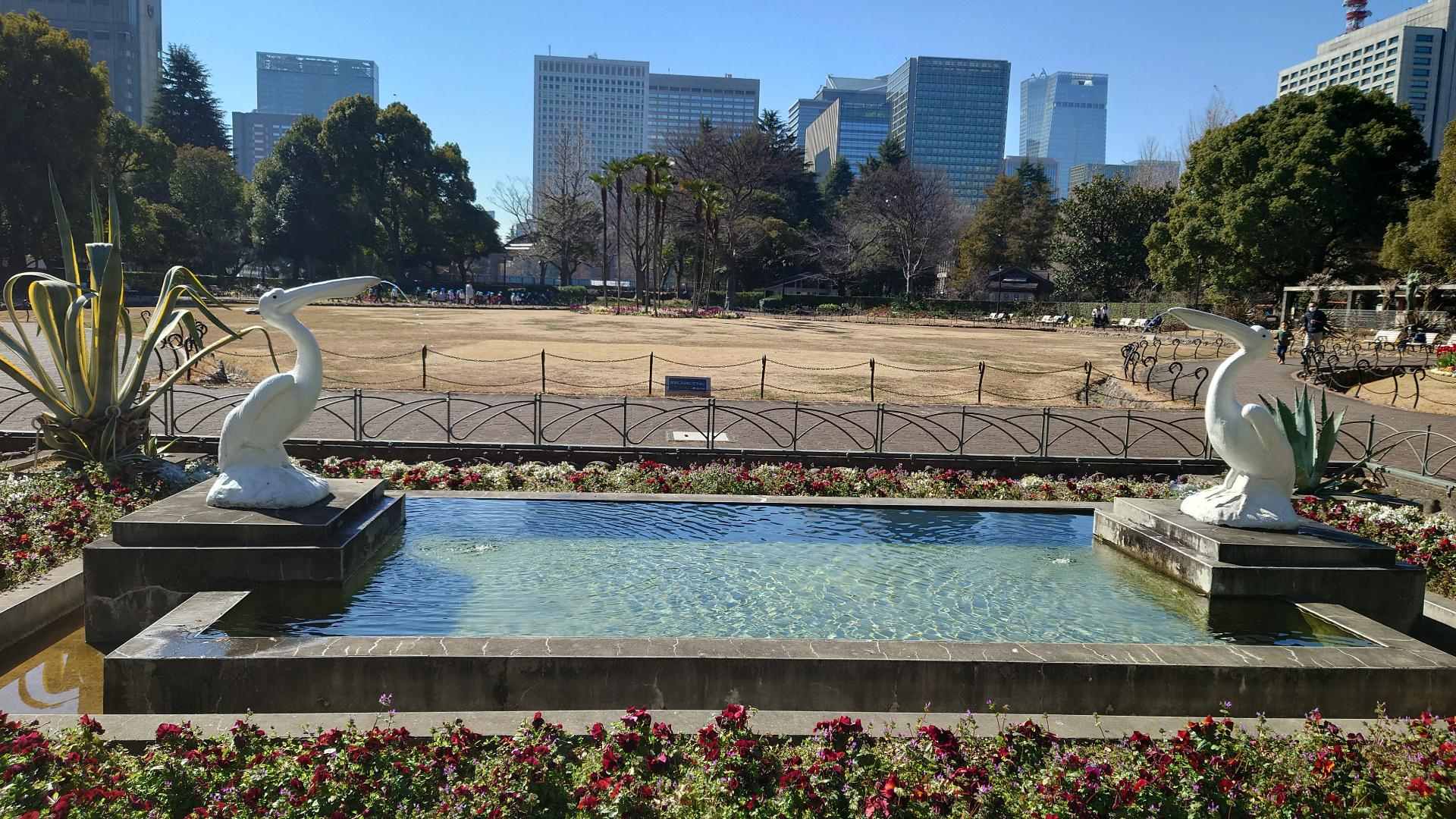 雲形池跟鶴的噴泉雕像(但拍的時候沒噴)