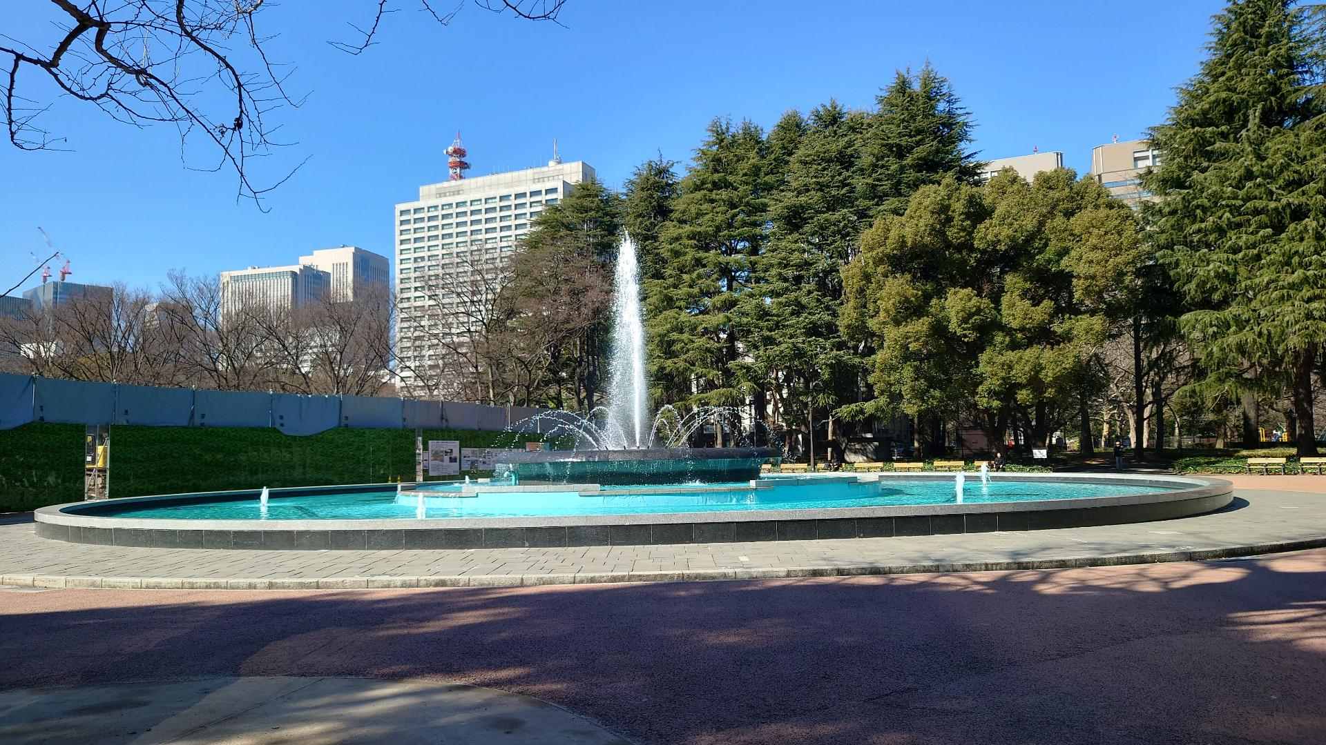 從日比谷站出來後,由南側的日比谷門進來後可以看到一座大噴水池,旁邊的樹蔭下有設置一些椅子,供遊客歇息。我便在這吃了剛剛買的早餐。