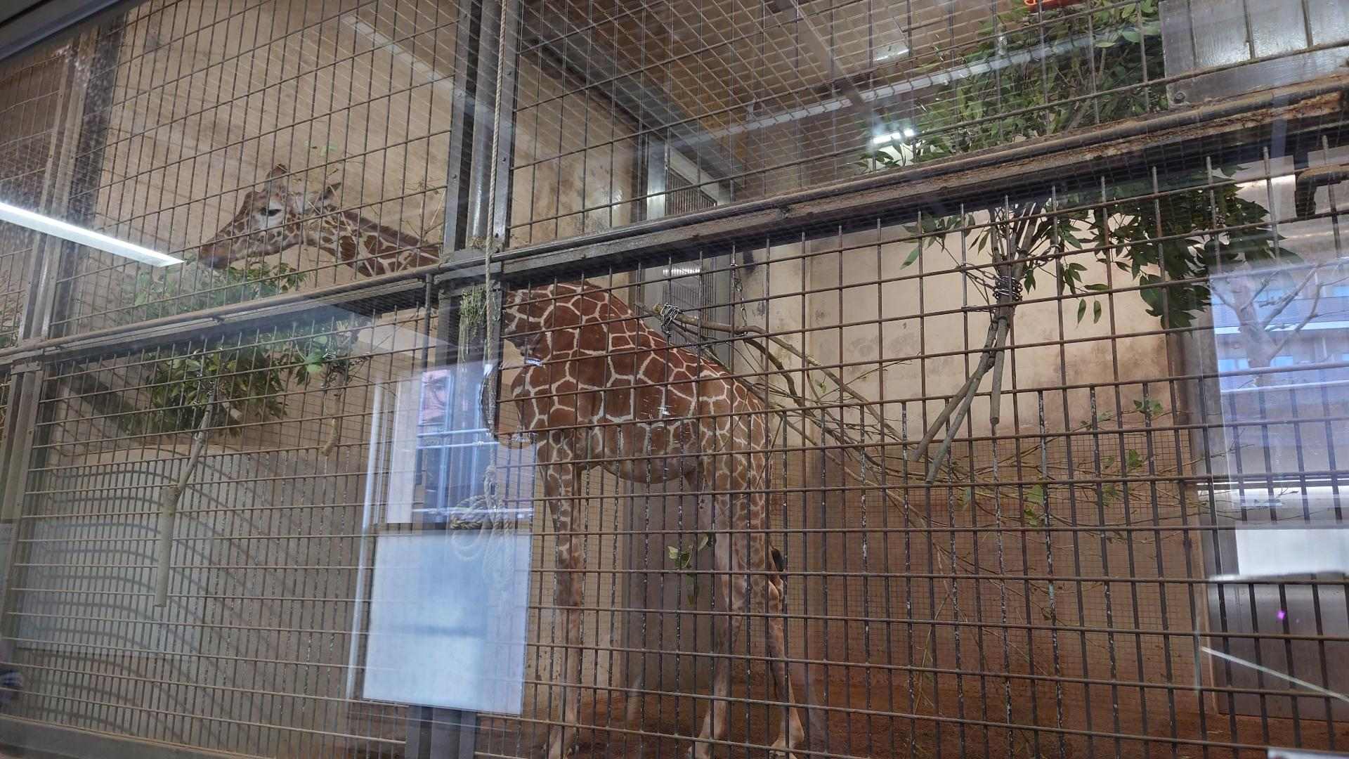 回室內吃草的長頸鹿