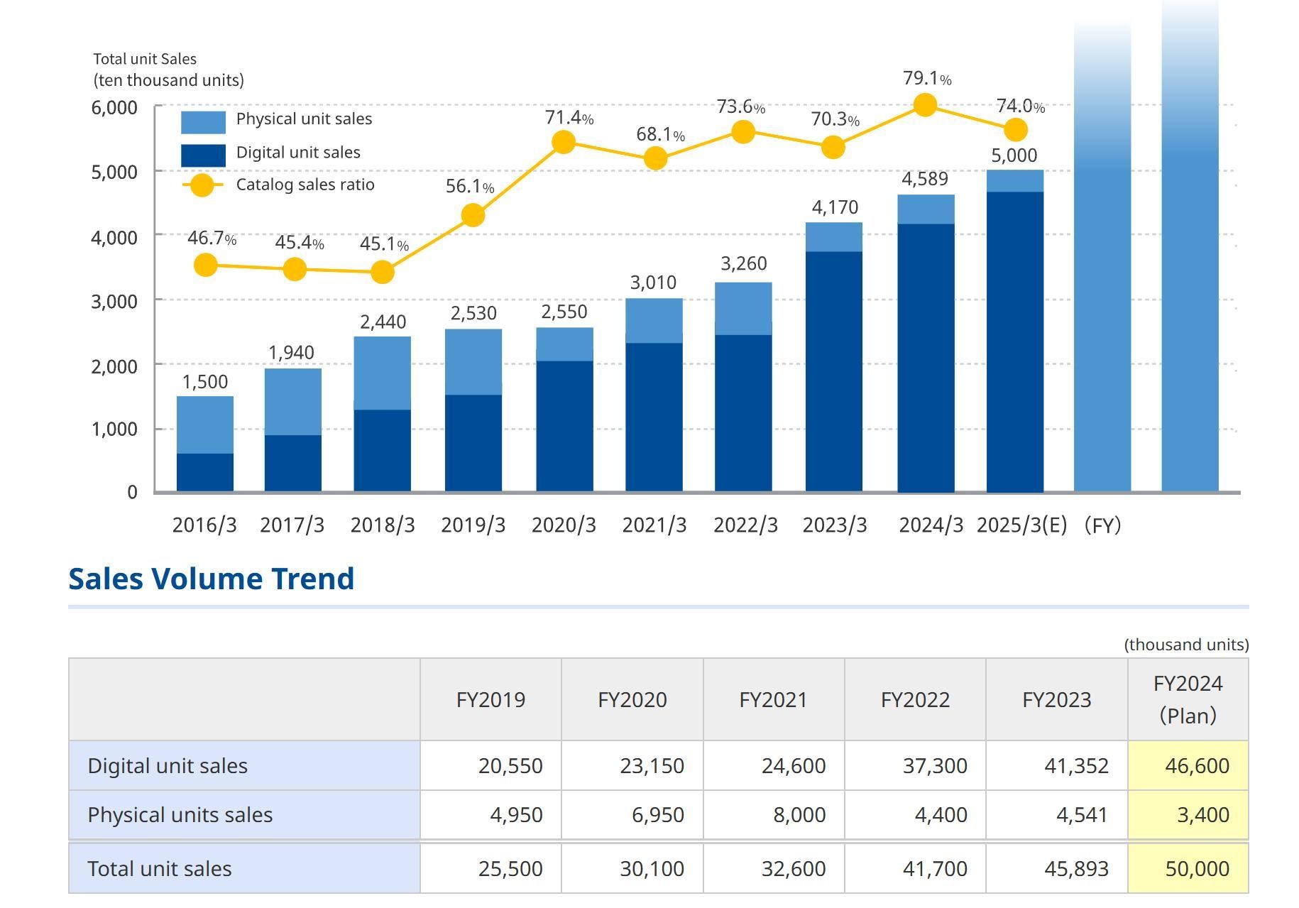 他們有93.2%的銷售都是來自數位版的遊戲,比起上一年是增加3%。
