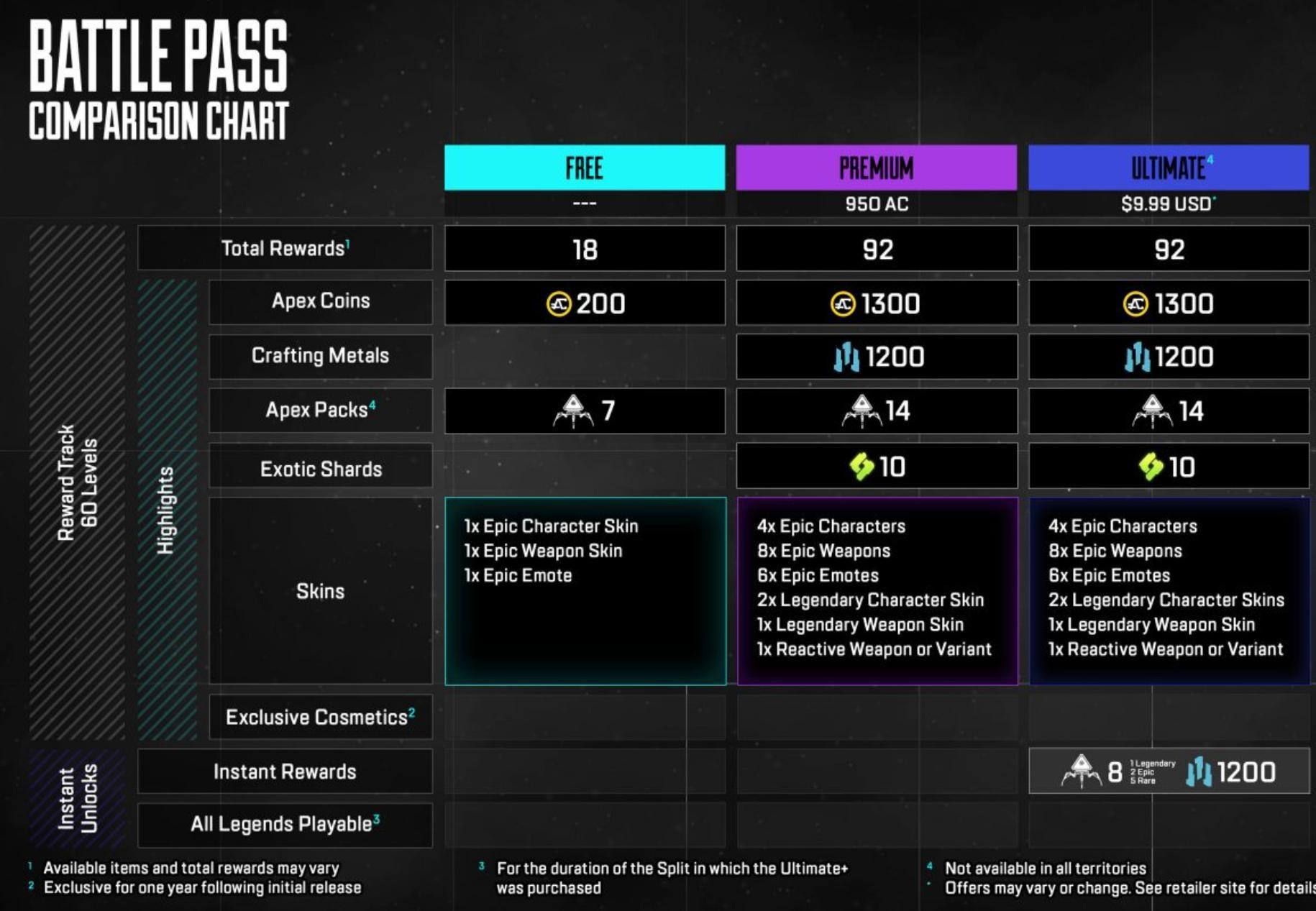 那麼在加價前,每個玩家每季都會有一個免費的Battle Pass,然後可用美金10元或遊戲幣950元去買高級版的通行證,會有額外110個的獎勵。