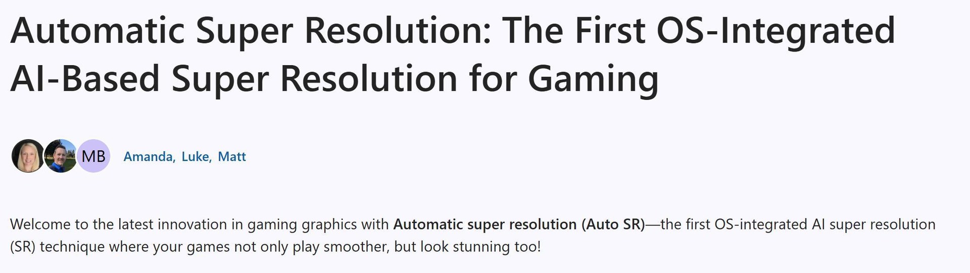 讓主機玩家一玩就已可以選擇AMD的FSR、Intel的XeSS,和微軟自家開發的Auto Super Resolution,自動超解析度成像技術,簡稱Auto SR。
