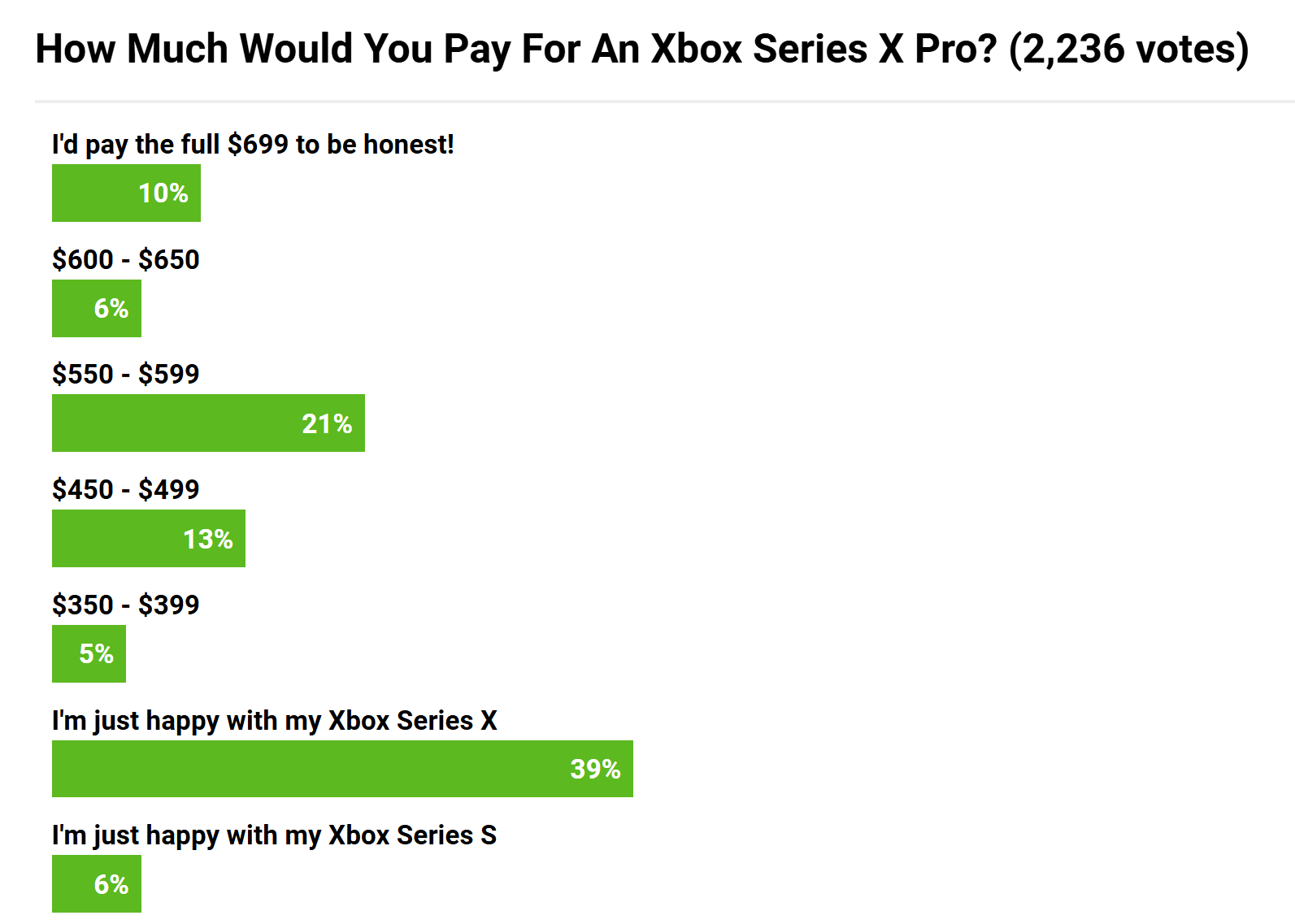 另外都蠻有趣的是Pure Xbox,即其中一個 Xbox 最大的情報網站,他們進行了一個投票。大部分的 Xbox 玩家都覺得,現在這部主機已經足夠,不需要有中世代主機強化的版本。不知道大家又是怎麼看呢?