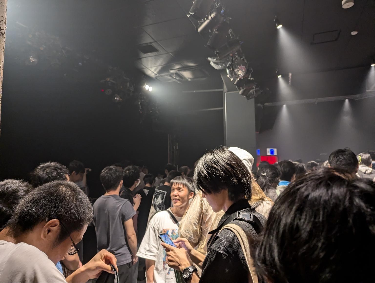 然後這次的live house雖然真的很小,不只我們底下擠,舞台上eureka的那個太空梭也沒空間搭出機首,要是你站的地方比較斜看不見機翼的話,太空梭就變成一個普通的圓柱了,但是這個live house有一個優勢,就是他是鐵路橋底下的房子,live期間也可以聽見電車經過的聲音,這種城市環境音大大加強了氛圍感,尤其在尾聲的時候電車經過那種感覺實在太棒了,這就是正式大展廳帶不來的街頭感啊