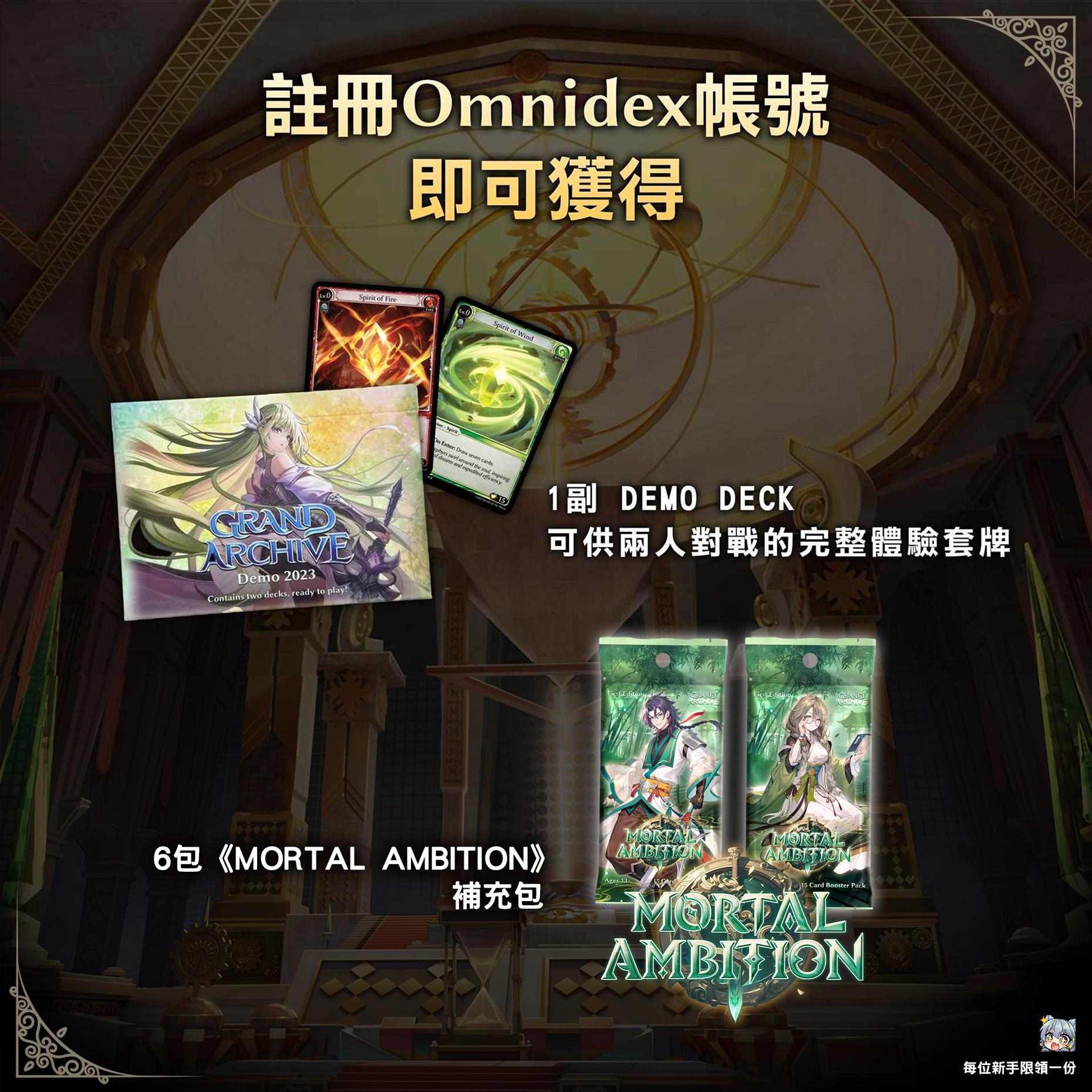 邀請對《Grand Archive TCG》感興趣的朋友一同參加活動,並協助他們完成 Omnidex 賽事系統註冊,即可額外獲得: