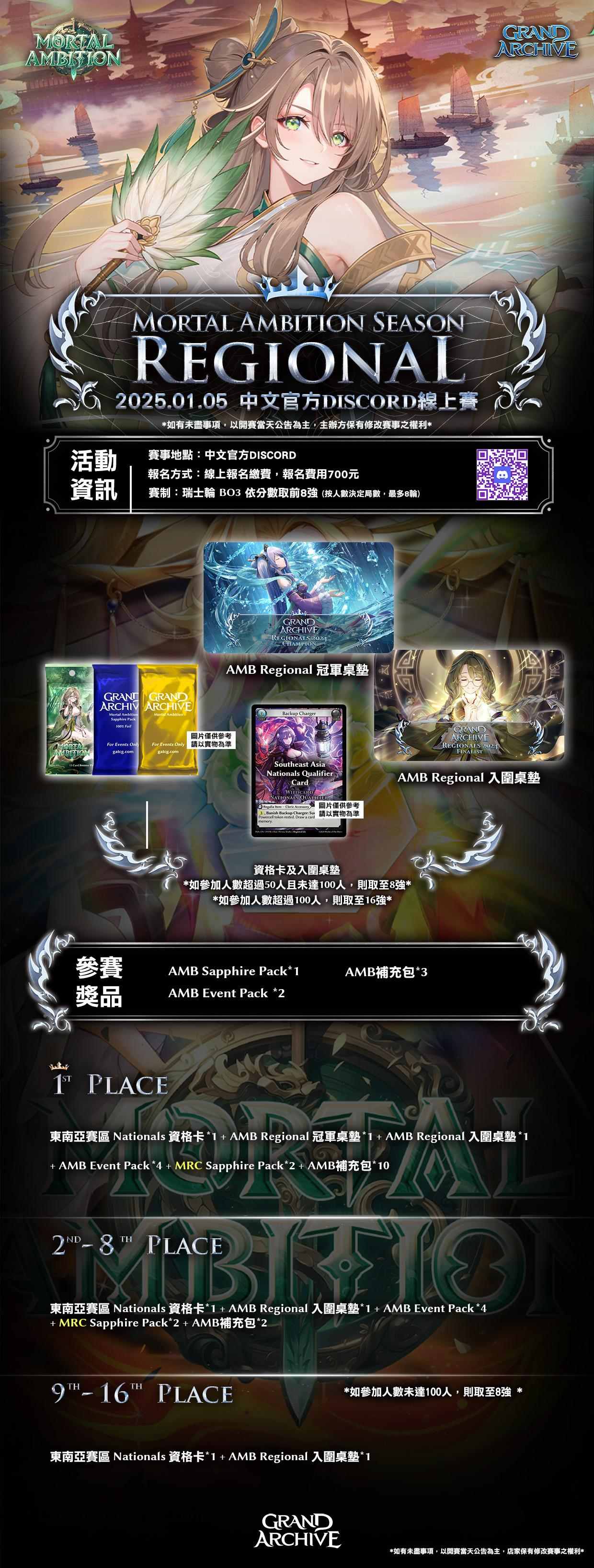 東南亞賽區 Nationals 資格卡*1 + AMB Regional 冠軍桌墊*1 + AMB Regional 入圍桌墊*1 + AMB Event Pack*4 + MRC Sapphire Pack*2 + AMB補充包*10