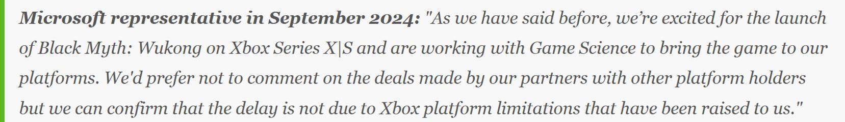 最終原因眾說紛紜,有很多不同的版本。例如微軟告訴 IGN 的版本,就是「我們不會評論遊戲工作室和其他遊戲主機平臺達成的協定」,不過《黑神話 悟空》沒有 Xbox 的版本就與我們平臺沒有關係。