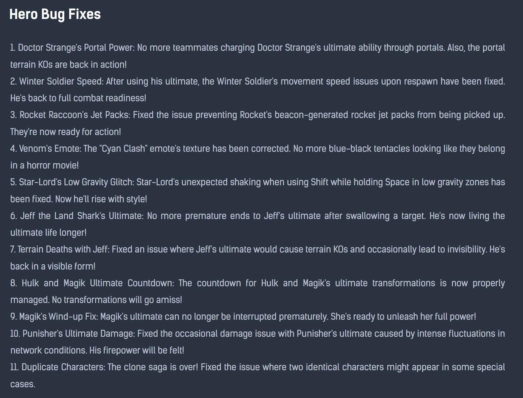 不過第一季的更新也意味著第一個平衡更新即將會推出,當然《漫威爭鋒》之前有兩次更新。