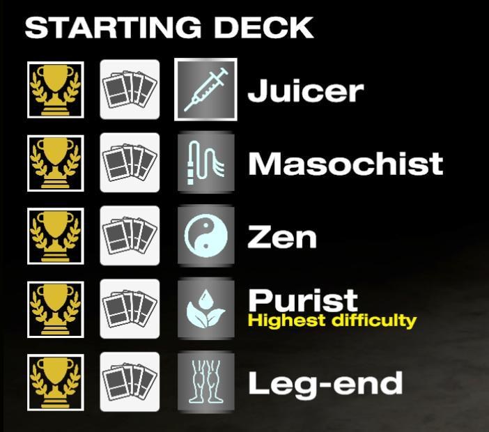 目前提供五種不同風格的初始卡組,對應不同的玩法風格與難度,影響玩家在遊戲開局時的卡牌組合與策略走向: