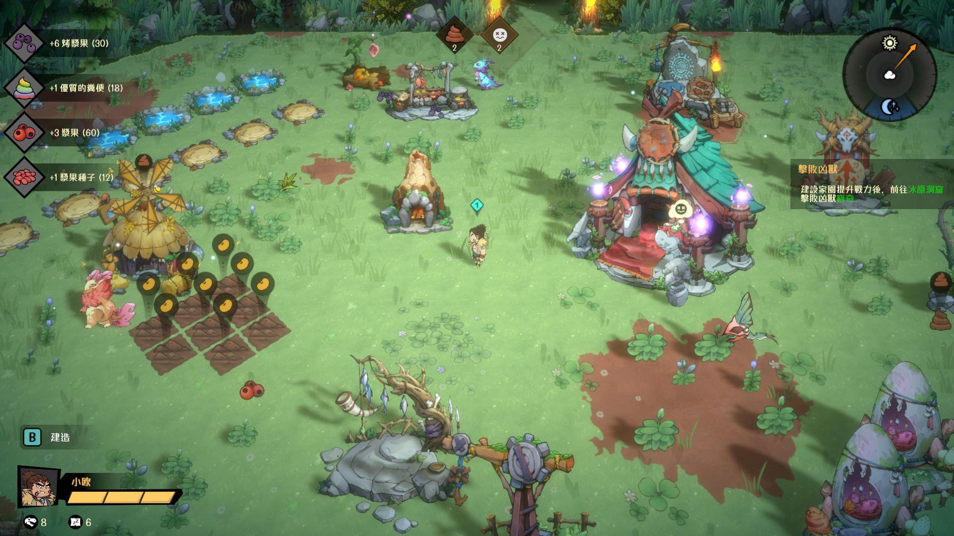 身為恐龍家園的小當家,我們需要透過打獵、建築與採集物資讓家園不斷興盛壯大,而在這過程當中,雖然有著諸多恐龍可以進行協助,但每一條恐龍也都有自己的健康值需要兼顧,若是不慎讓恐龍過度飢餓或是操勞,不僅會導致他們工作效率降低,還可能會因此而病倒!