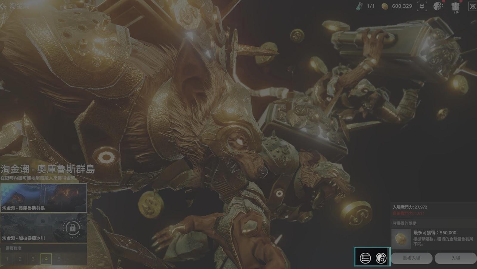 「掏金潮」則是相當純粹的金幣副本,只要將關卡內的豺狼人全數擊殺,即可取得大量的金幣作為獎勵。