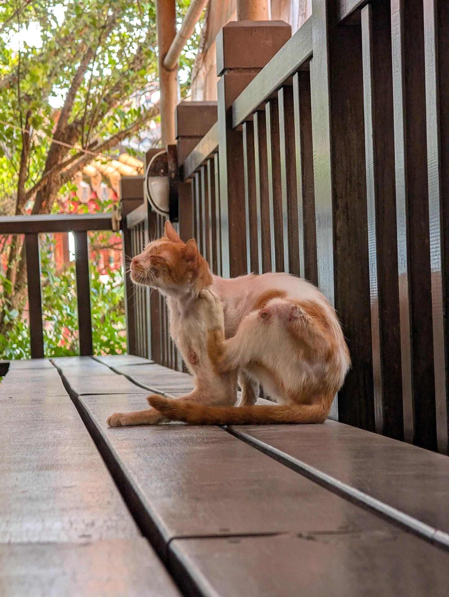 快到三角點的台階有蜜蜂巢,這是一個特別的經歷,以往沒有走過這樣視野開闊風勢又大的山,也少有遇到大型野生動物的經驗。下山經過天公廟,遇到這隻貓。