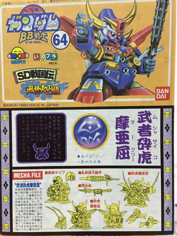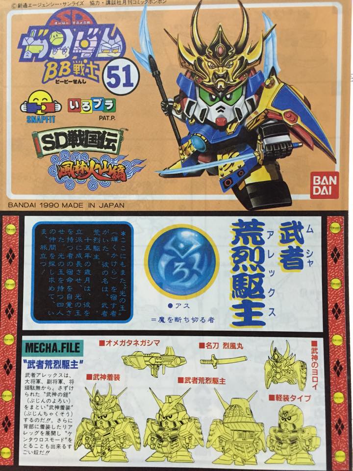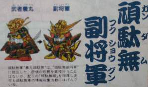 ^__^ 就是這樣子 下一篇 SD武者風雲錄--天下統一篇的主角還是 武者荒烈驅主 同時更說明了為什麼第一篇的大將軍竟是二代目而不是第一代的可怕陰謀 在本篇中若有儲齊其中四位邪惡武者的話 他們的模形內都會付送一個裝備部位 是可以把模形的 殺驅頭換裝成 新闇將軍形態的 最後送上本篇的一個有趣設定
