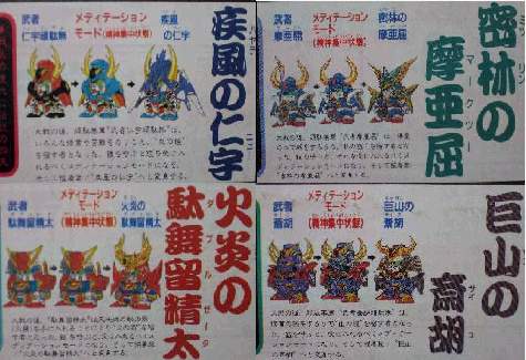 風' 林' 火' 山 四天王 是由上一代的主角進化而成的 這一篇的版本只要把新的裝甲卸下來後 便可以換裝成年輕時的上一代版本 ^__^ 可以說為新玩家節省了一些敗家錢