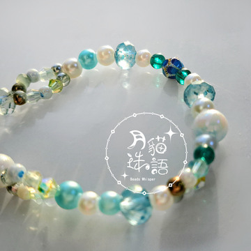 幻彩珠和藍綠切角玻璃珠為匯聚點,魚線串起雙排碧色與半透明小珠。重點段落用玻...(繼續閱讀)