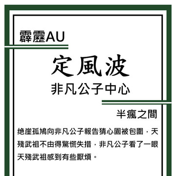 天殘武祖便終日惶惶不安深怕被獅頭寶刀所殺,見此情況非凡公子難免冷嘲熱諷說天殘武祖好歹也是北武林佼佼者,如此毛躁難怪成不了大氣,天殘武祖則反駁都是因為亂...(繼續閱讀)