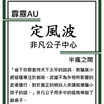 好希望他可以跟小徒弟飛英繼續行走在江湖上啊...(繼續閱讀)