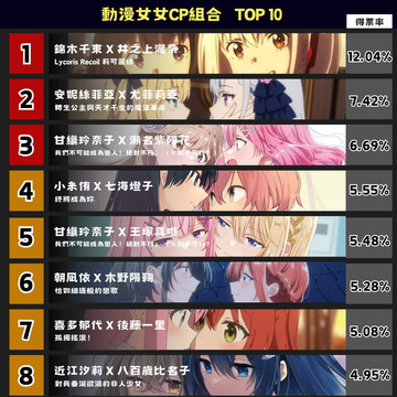 動漫女女CP組合 排名揭曉!